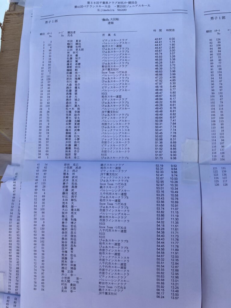 成績は、抜群ではないものの参加者の皆さんは安定した滑りで、全員完走!県民大会の選手選考にも役立ちました。